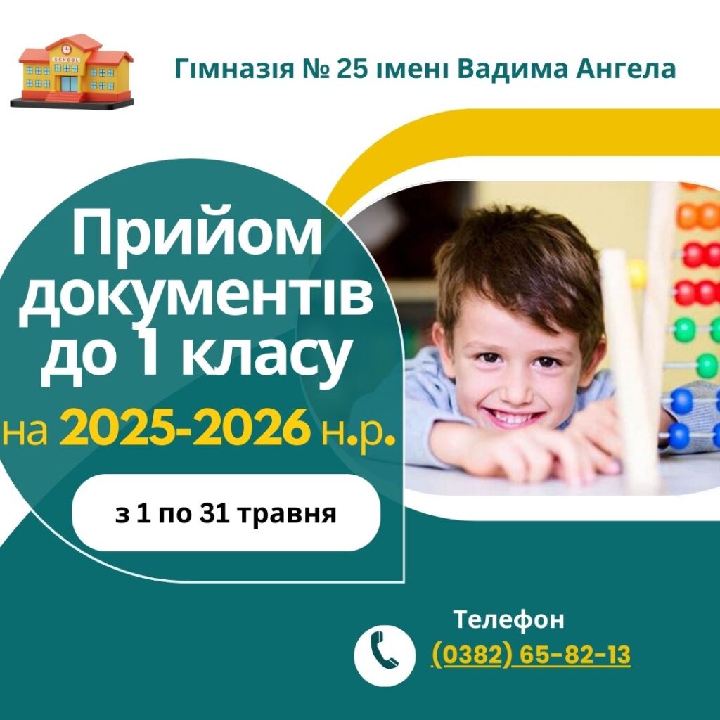 ПРИЙМАННЯ ЗАЯВ ДО 1 КЛАСУ НА 2025-2026 НАВЧАЛЬНИЙ РІК РОЗПОЧНЕТЬСЯ З 1 ТРАВНЯ І ТРИВАТИМЕ ДО 31 ТРАВНЯ