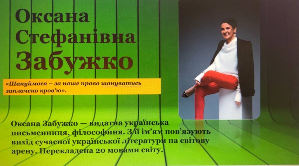 Сьогодні бібліотекар Гімназії №25 імені Вадима Ангела провела літературний захід, присвячений життю й творчості відомої української письменниці, поетеси та публіцистки Оксани Забужко до її 65-річчя від дня народження.