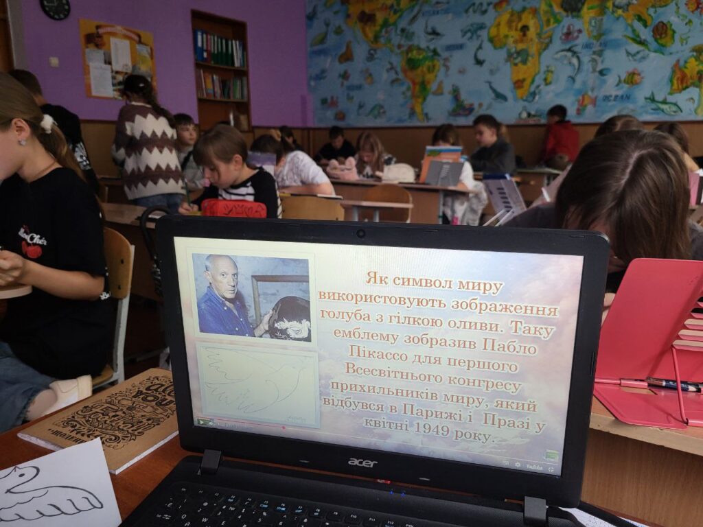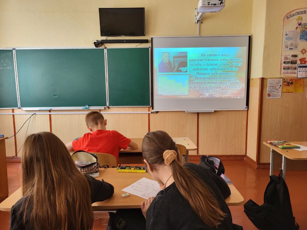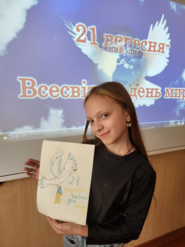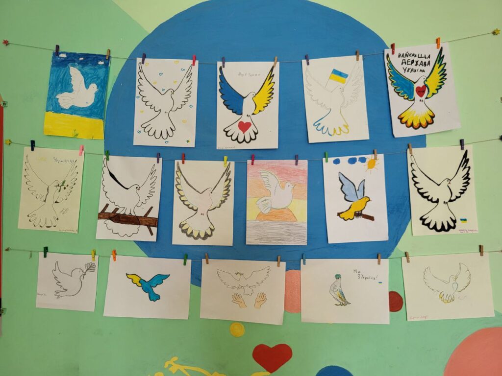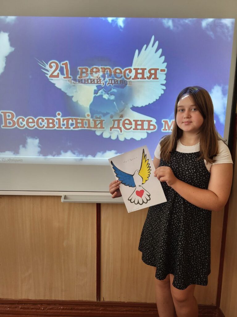 Гімназисти 5-6 класів на уроках мистецтва розфарбовували голубів та створювали свої малюнки з голубами – символами миру на землі, таким чином дізнавалися про історію та причини проголошення Міжнародного дня миру.