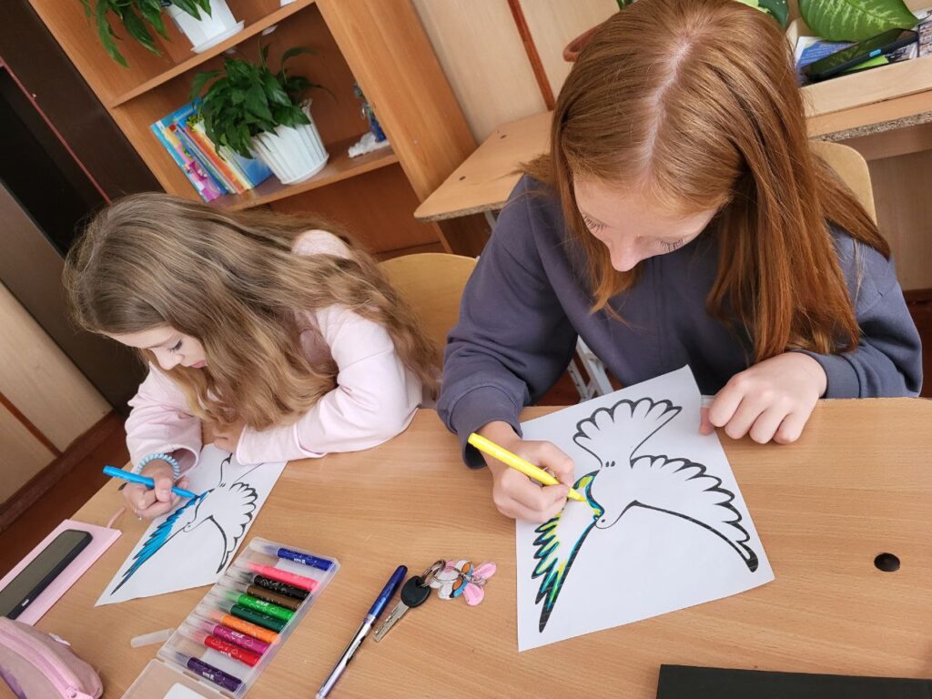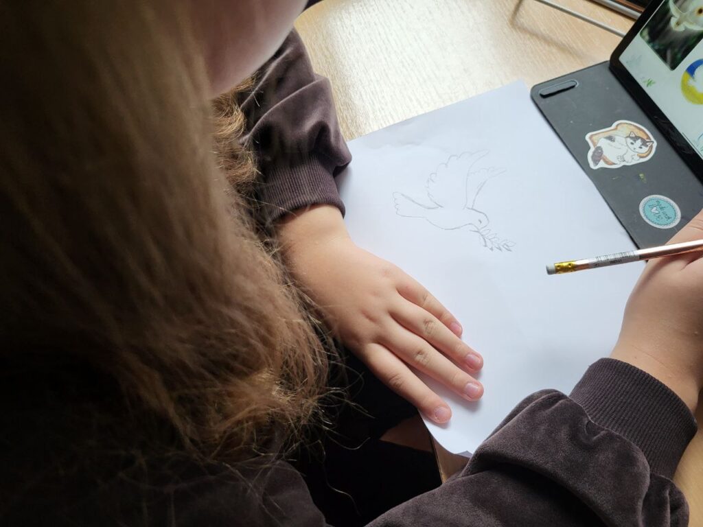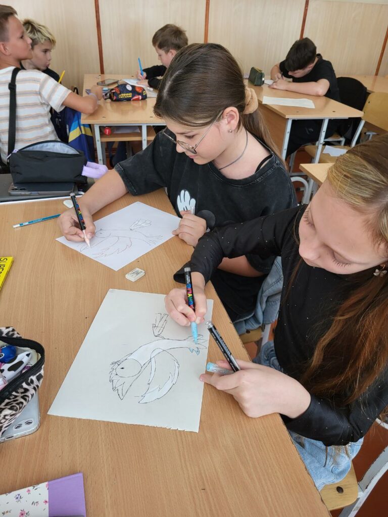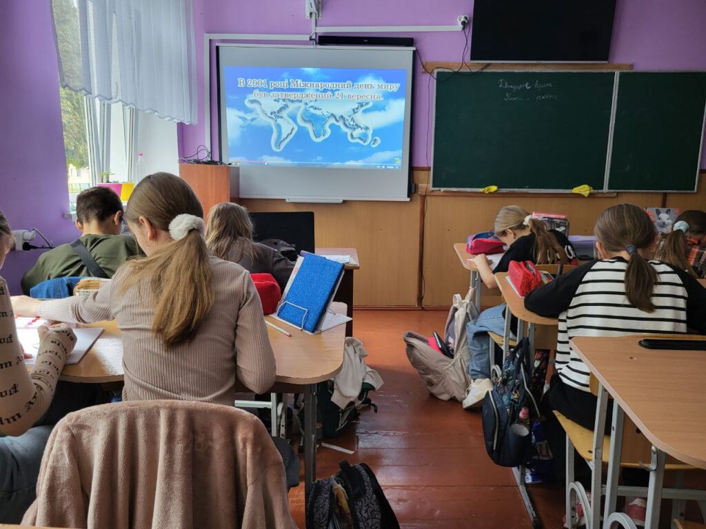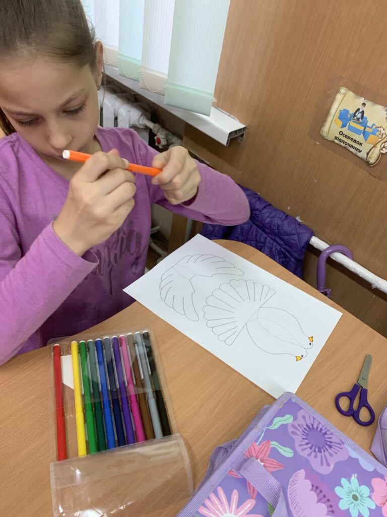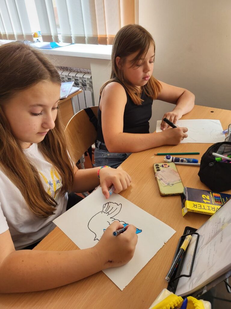 Гімназисти 5-6 класів на уроках мистецтва розфарбовували голубів та створювали свої малюнки з голубами – символами миру на землі, таким чином дізнавалися про історію та причини проголошення Міжнародного дня миру.