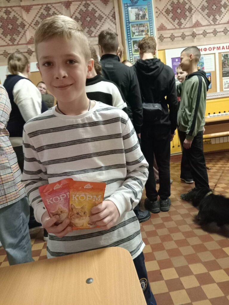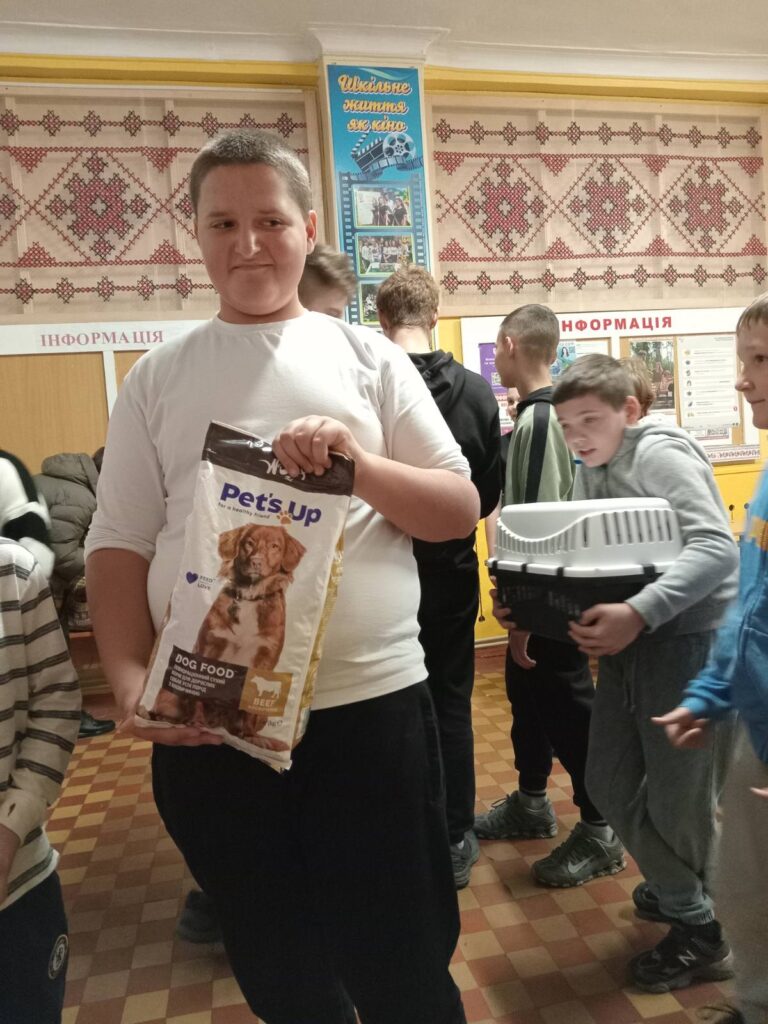 Учні, які не мають домашніх тварин, також підтримали тваринок, особливо тих, які живуть в притулку, і принесли харчі та корм для них.