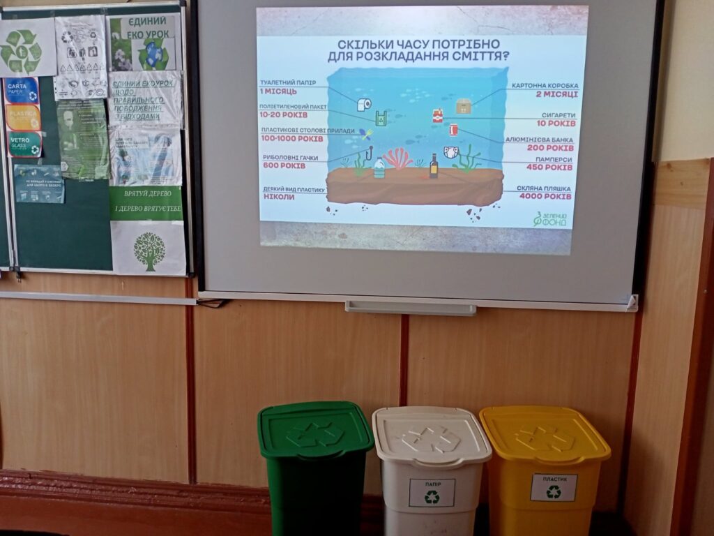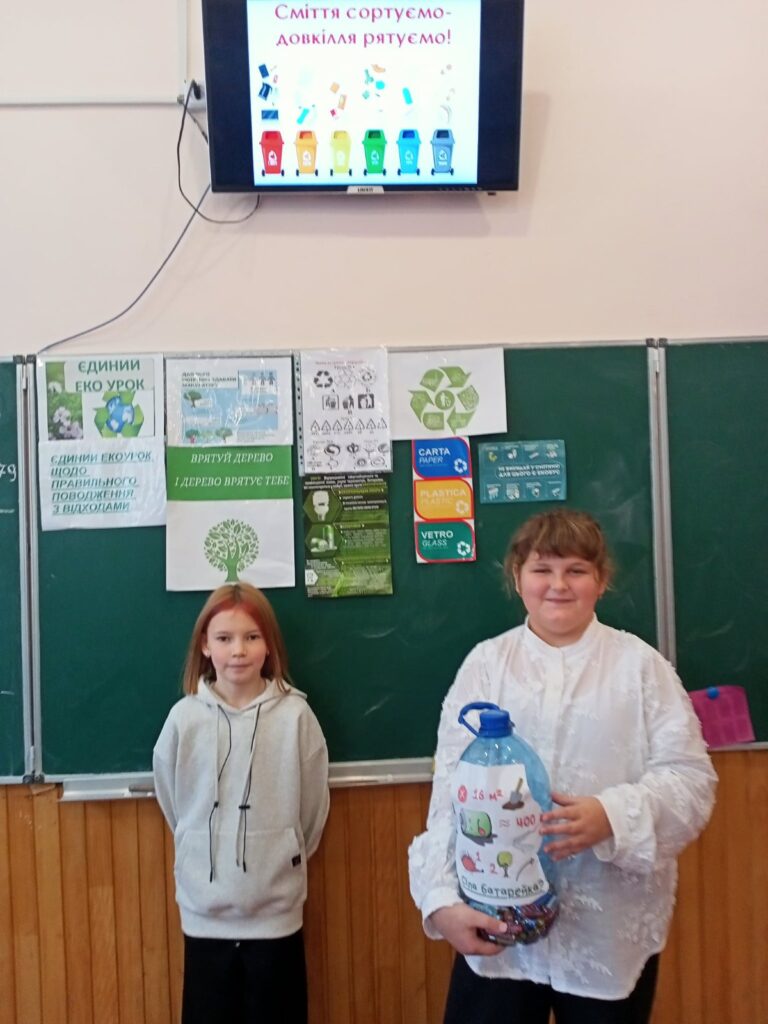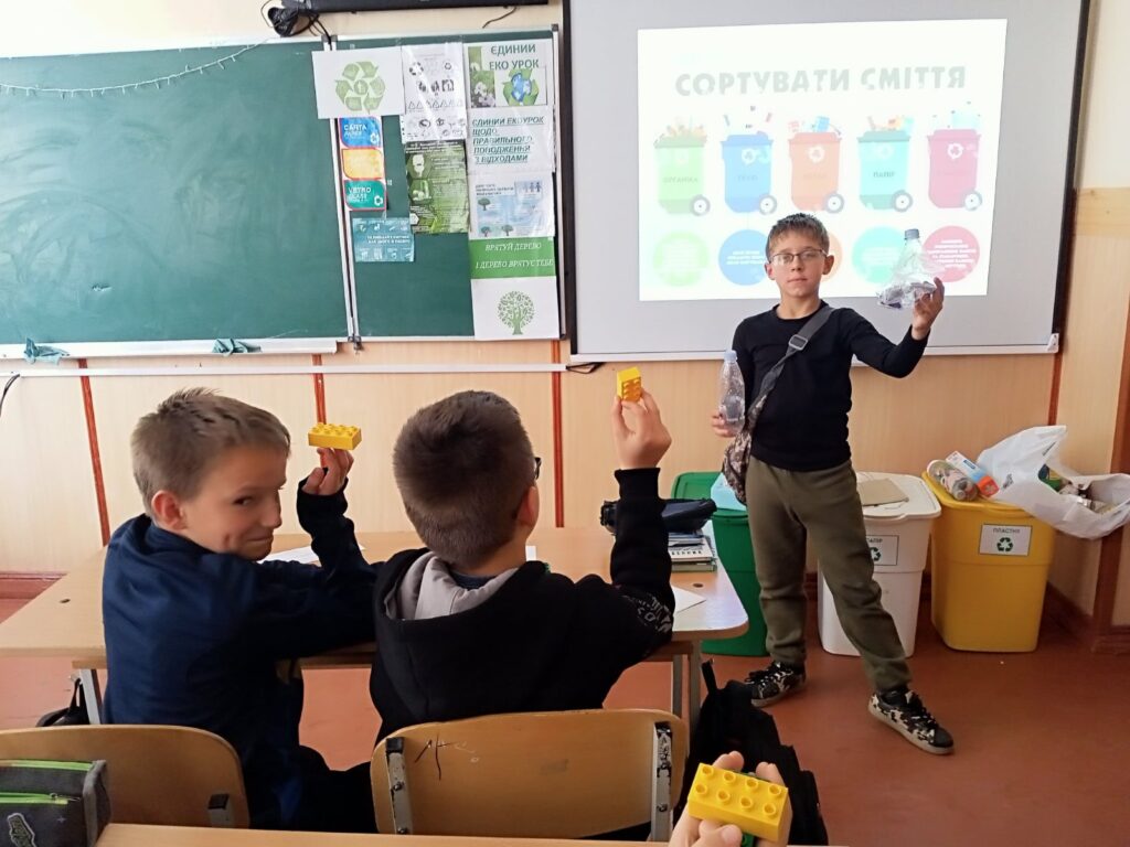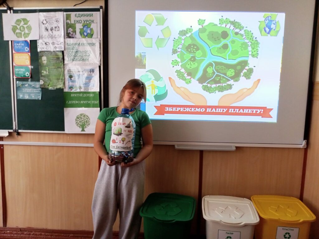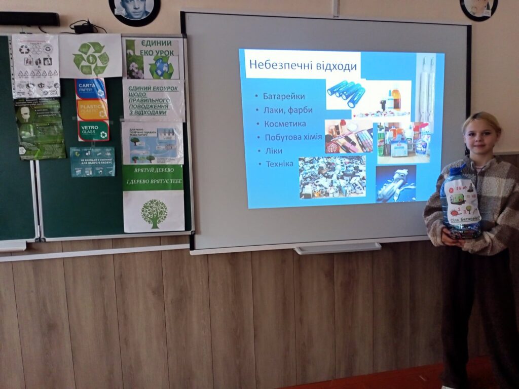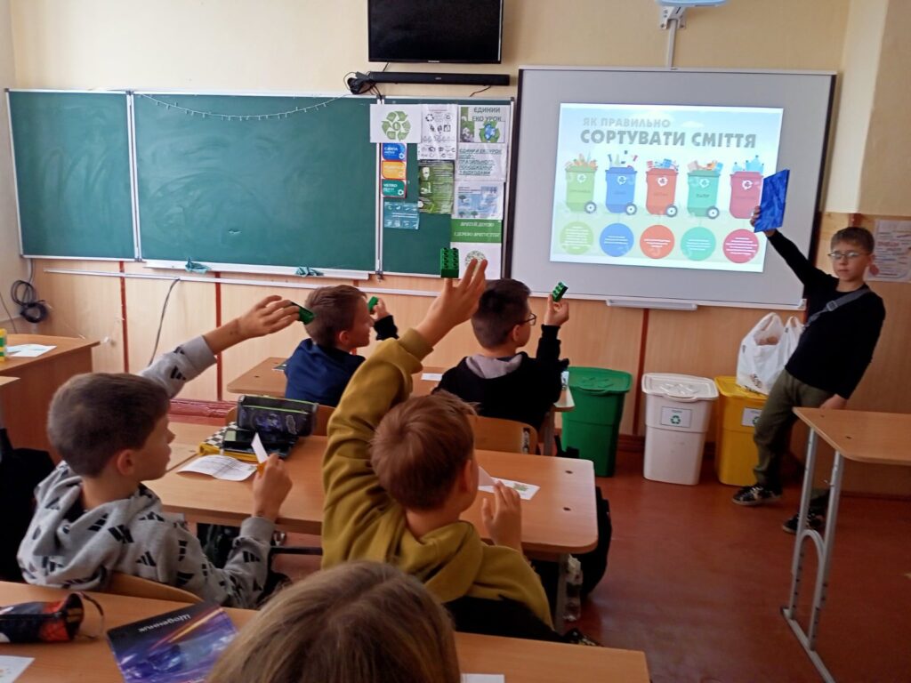 Учні переглянули відео про сортування сміття та у веселій ігровій формі розвивали навички правильного сортування; ознайомилися з інформацією про шкоду батарейок і пластику, пригадали екологічне маркування.