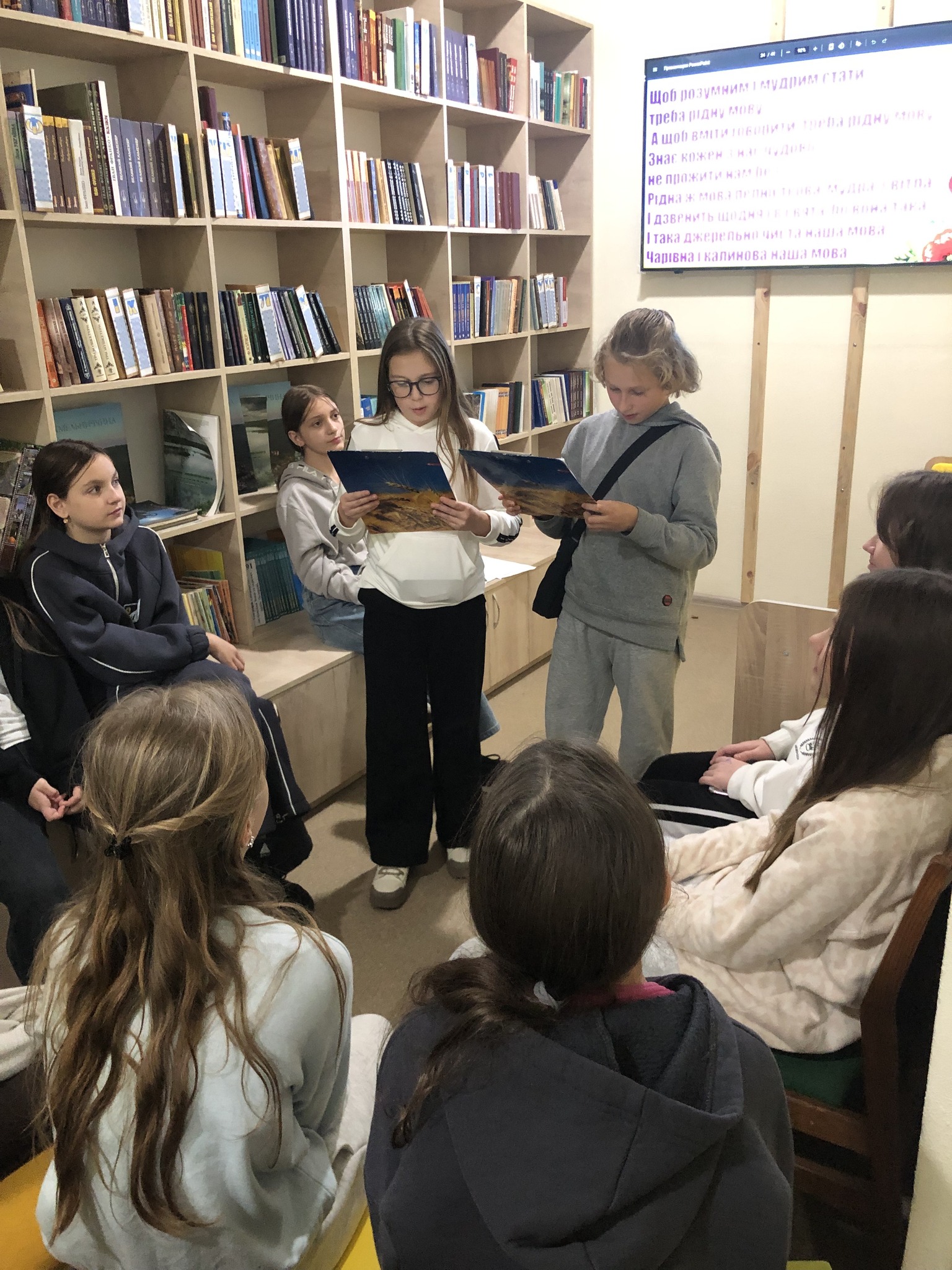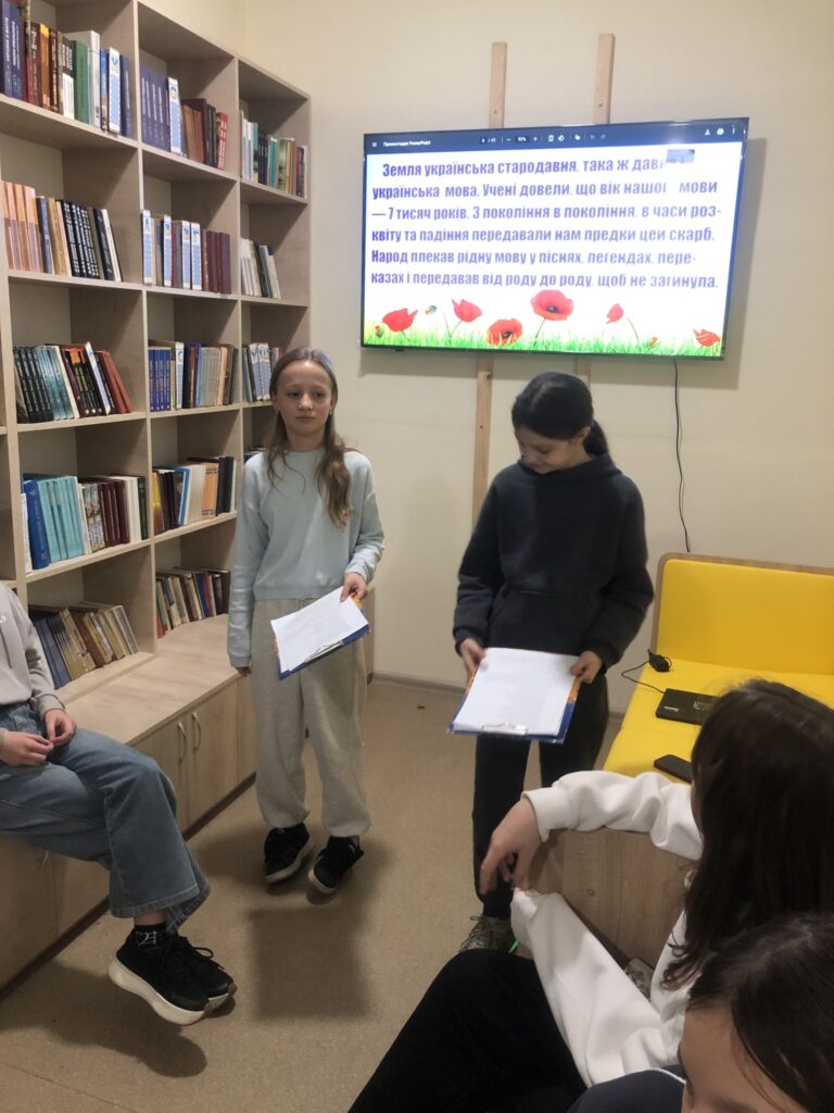 У бібліотеці гімназії №25 імені Вадима Ангела відбувся пізнавальний захід «Солов’їна, барвінкова, дзвени струмочком , рідна мова!», який провела шкільний бібліотекар Владюк Олена Миколаївна для учнів 5–6 класів.