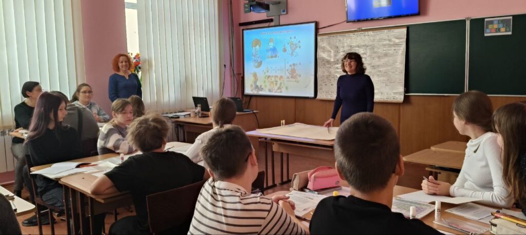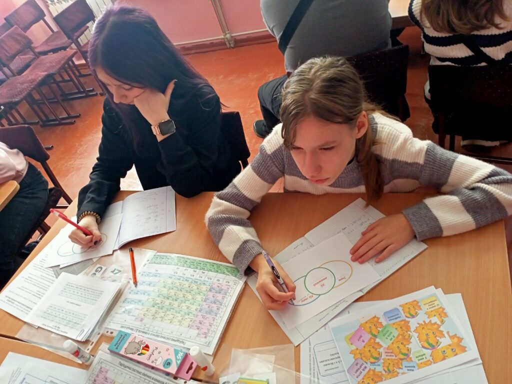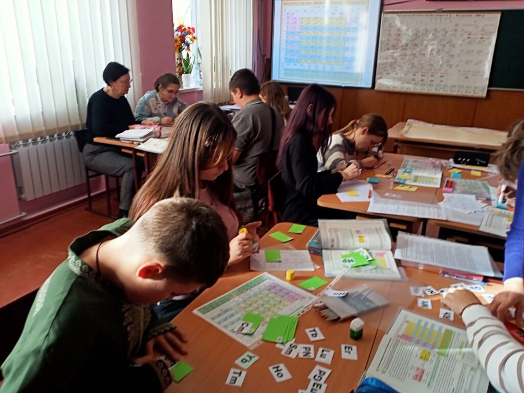 Впродовж уроку вчителька математики Гусак Ганна Вікторівна та вчителька хімії Мацьків Ірина Федорівна уміло поєднували різні форми роботи і види діяльності учнів.