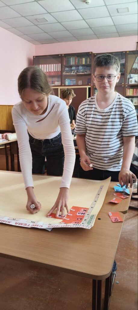 Діти уважно переглядали пізнавальне відео про будову періодичної системи та старанно створювали до отриманої інформації опорні схеми ; ділились думками, допомагали один одному і творили разом.