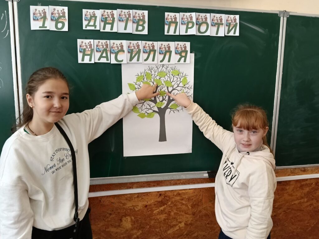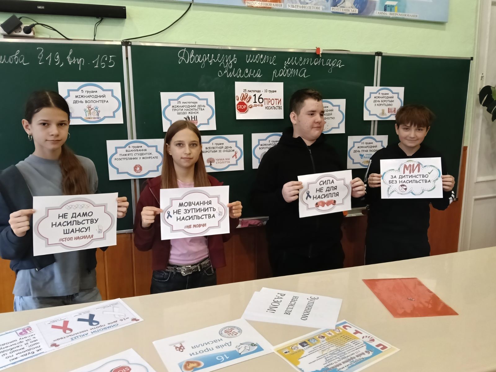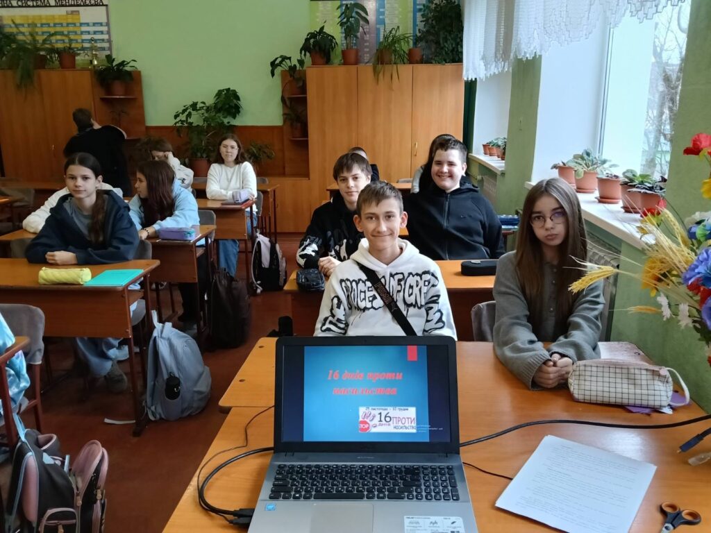 Учні 6-А класу в межах кампанії «16 днів проти насильства» говорили про права, особисті кордони, взаємопідтримку, шляхи протидії та захисту у небезпечних ситуаціях.