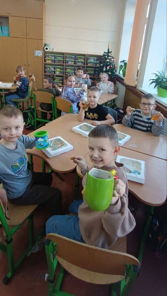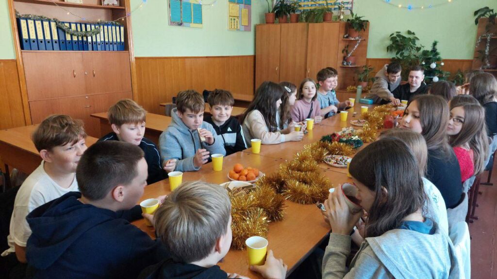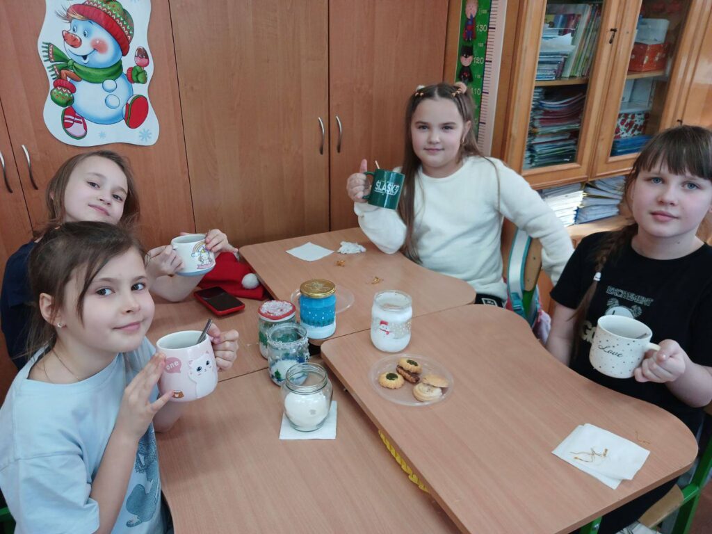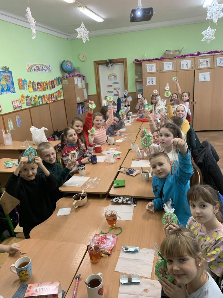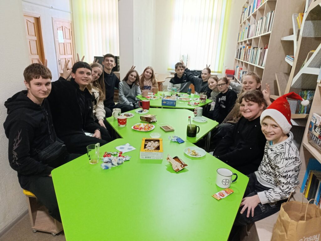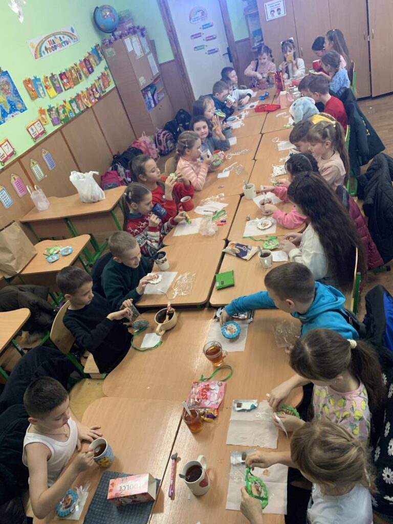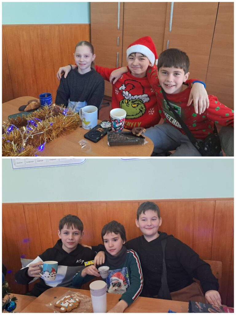 У четвертий день Тижня новорічного настрою у класах учні об’єднали столи, виклали на них солодощі, налили у свої чашечки з чаєм кип’ятку і насолоджувалися смаком печива, цукерок й сімейною святковою атмосферою чаювання.