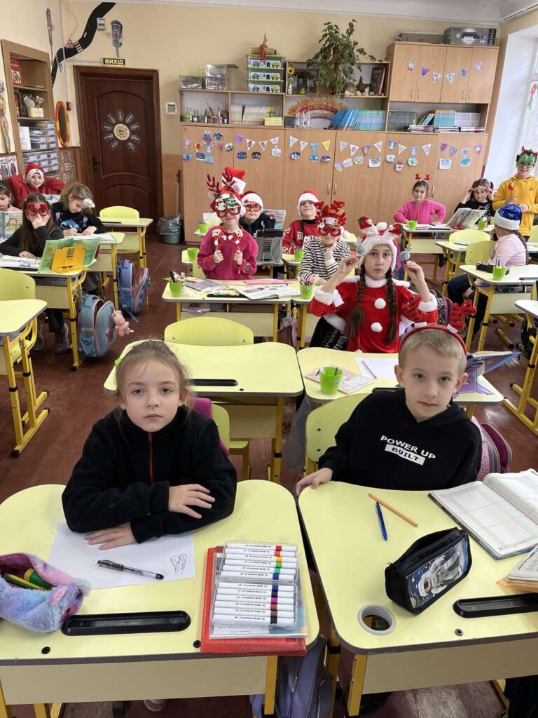 Учні 1-Б класу Гімназії № 25 імені Вадима Ангела на уроці англійської мови доєднались до дня новорічної музики в рамках Тижня новорічного настрою та заспівали пісню “Hello, reindeer! “