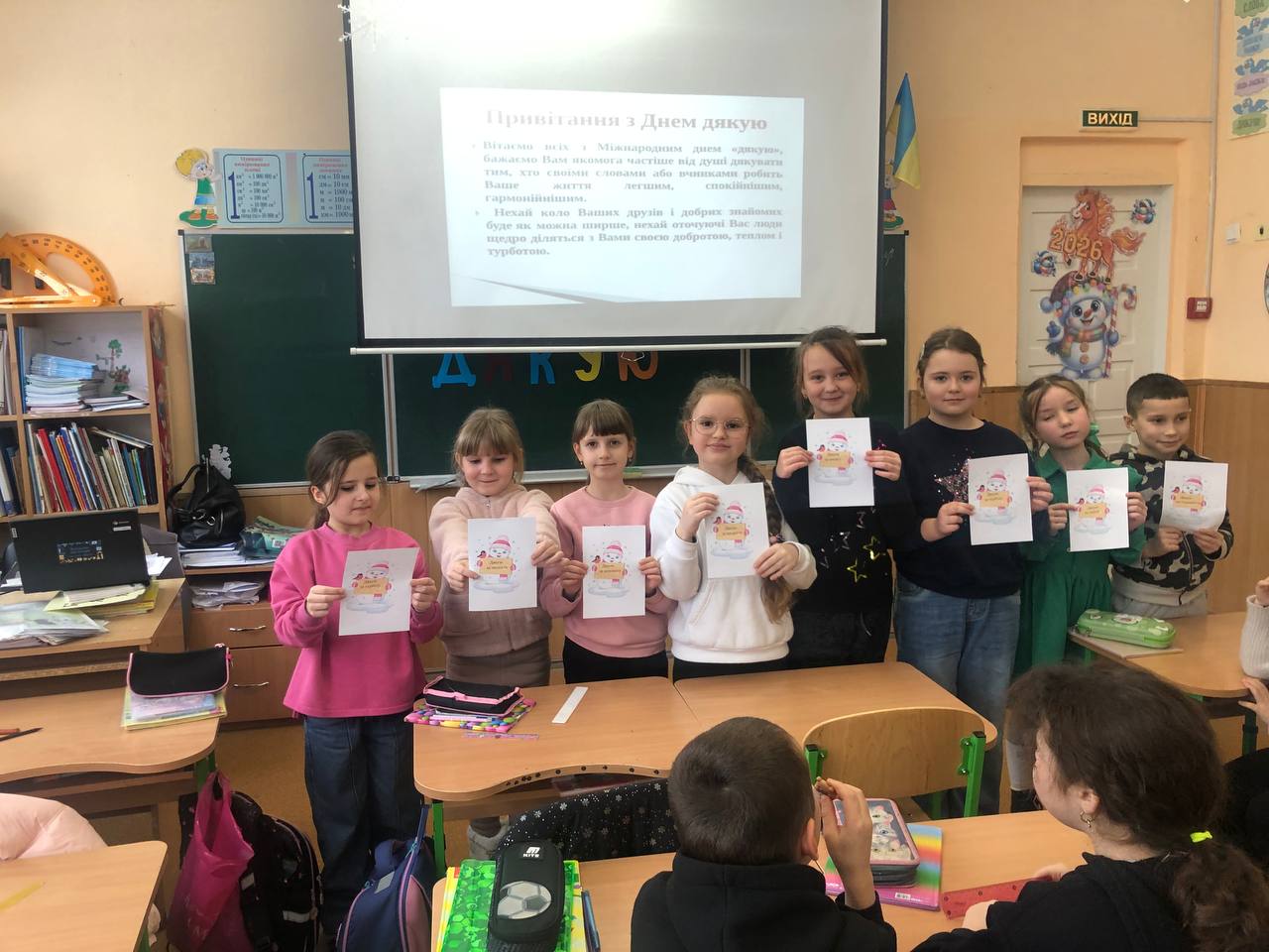 У Гімназії №25 імені Вадима Ангела у 3-4 класах відбувся теплий та змістовний захід, присвячений Всесвітньому дню “Дякую”, який підготувала та провела бібліотекар Владюк Олена Миколаївна.