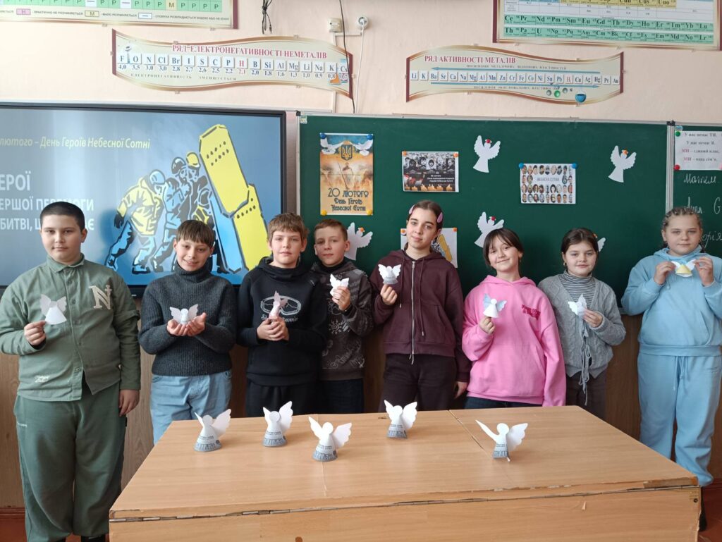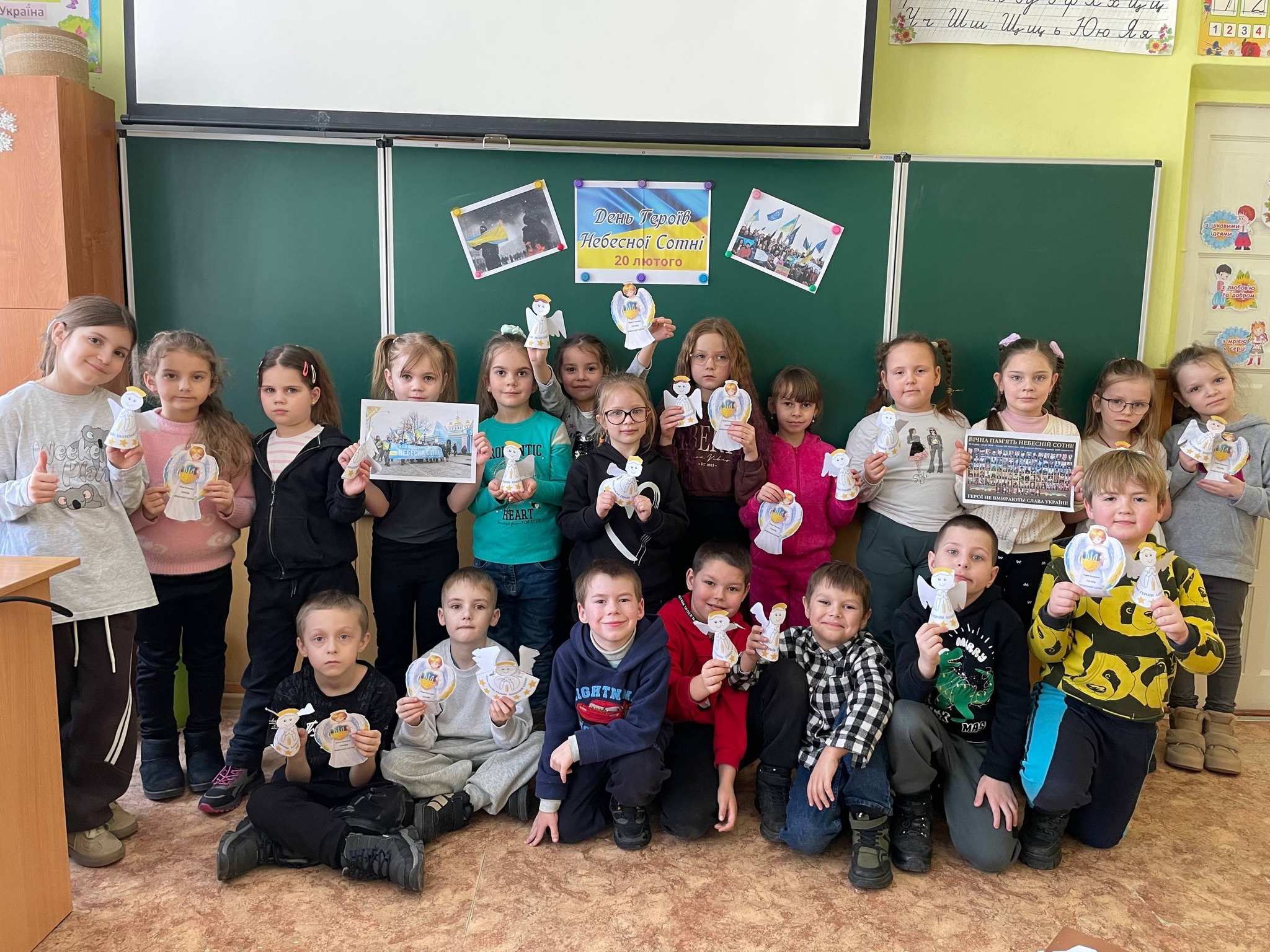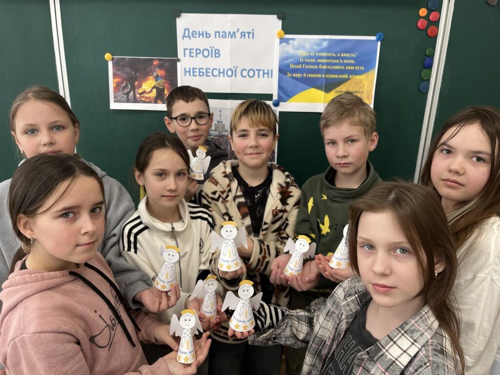 Для учнів початкової школи класоводи провели уроки-памяті з елементами виготовлення білих янголів, як символів загинувших майданівців.