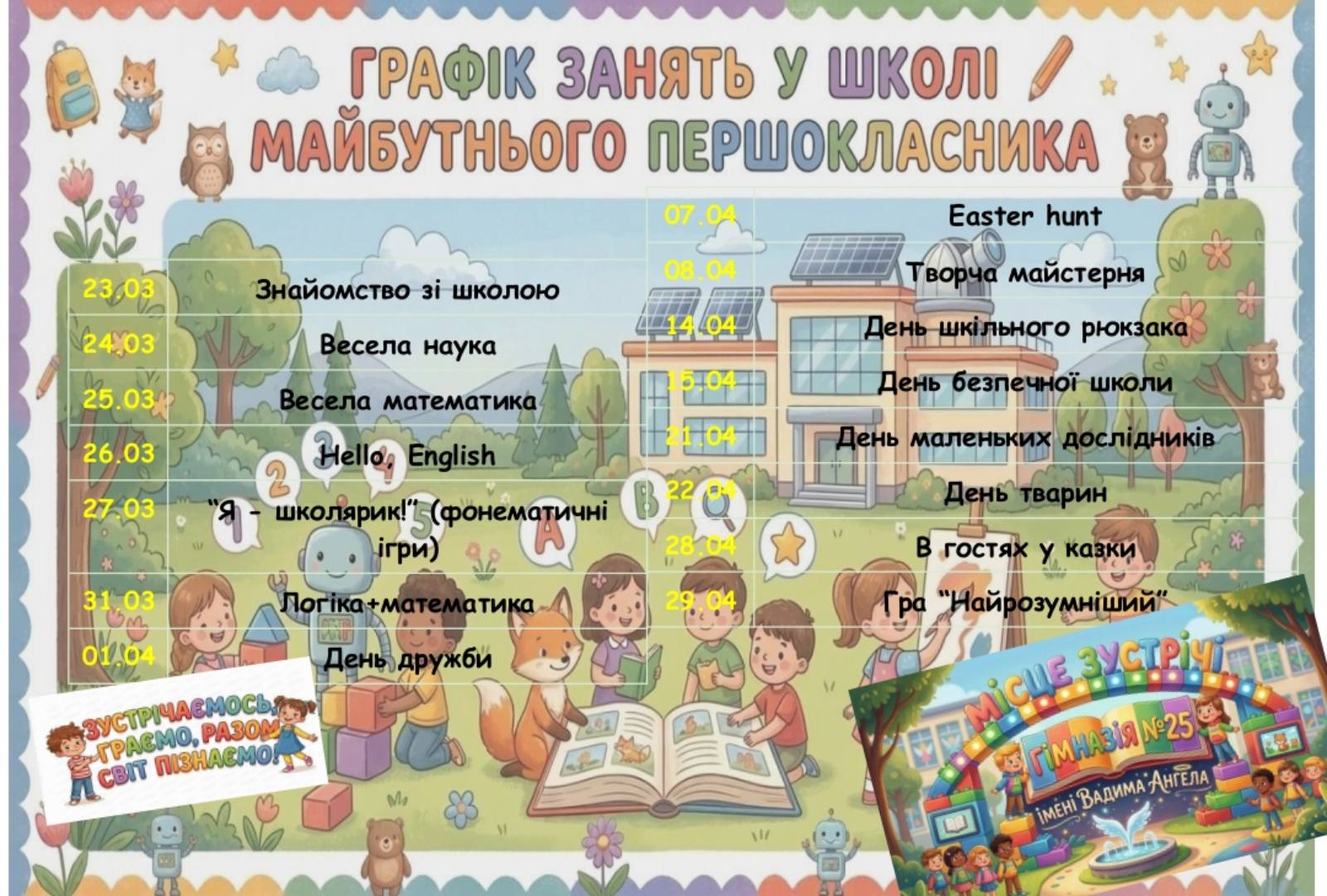 Гімназія №25 імені Вадима Ангела щиро запрошує вас до «Школи майбутнього першокласника».